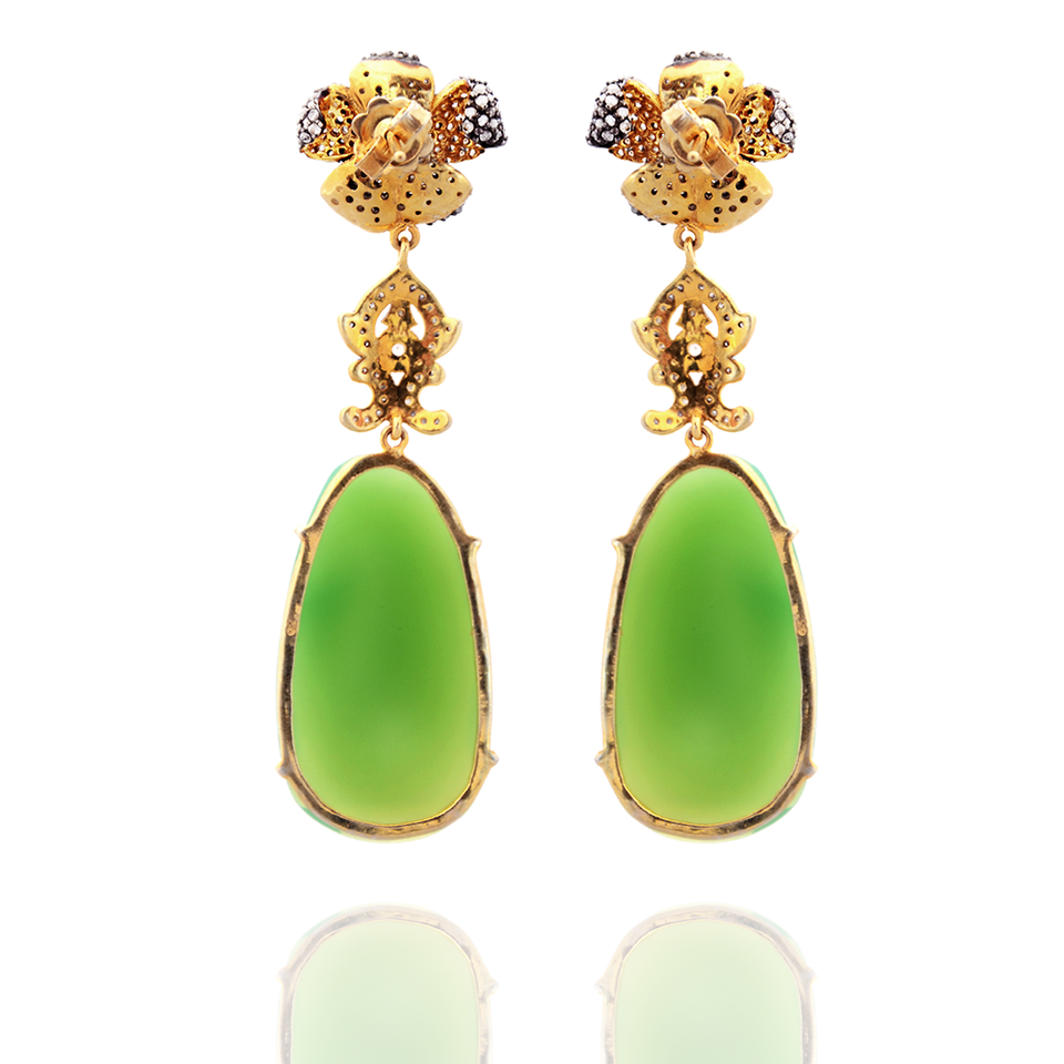 REYES Victorian Earrings with Natural Diamond Accents and Natural Gemstones Floral Design 14K Gold 925 Silver Party Wear Jewelry