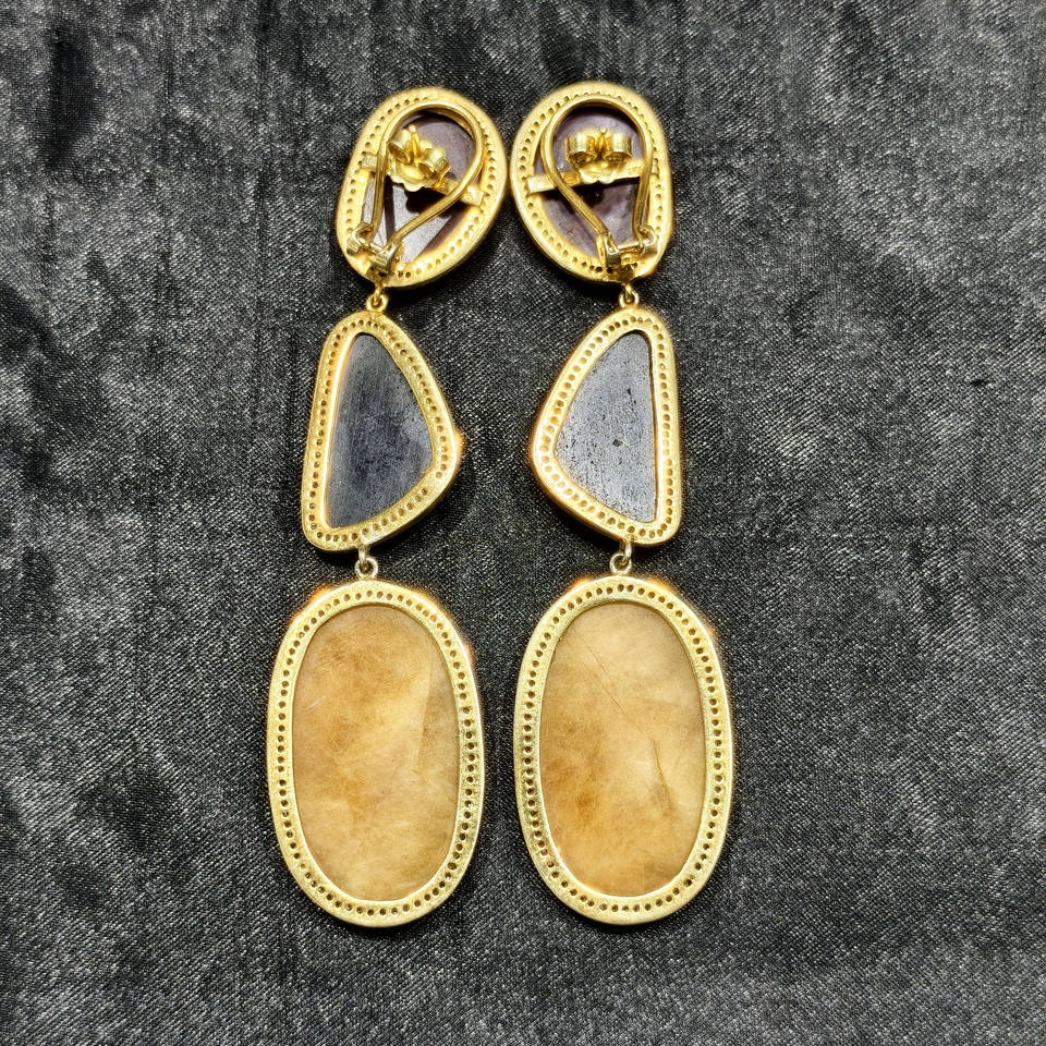 REYES Exquisite 14K Gold 925 Sterling Silver Natural Diamonds With Amethyst And Blue Sapphire Gemstone Victorian Earrings