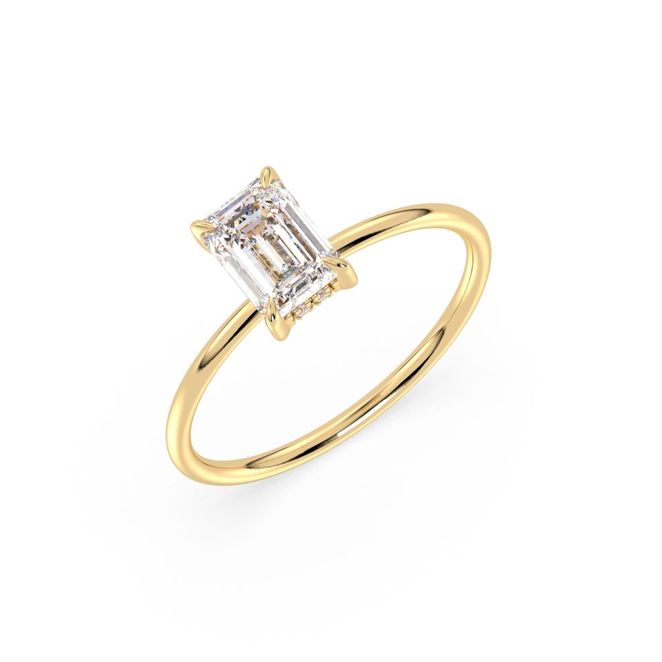 REYES HPHT CVD Lab Grown Diamond Hidden Halo Ring in 14K Solid Yellow Gold Engagement Wedding Gift Fine Jewelry For Women