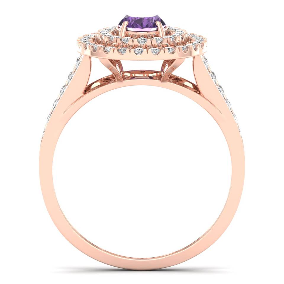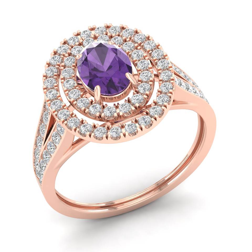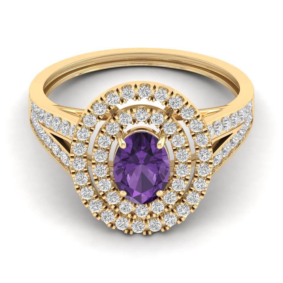 REYES Handmade 14K Solid Gold Diamond Engagement Halo Rings Oval Cut 0.75 Carat Amethyst Gemstone Fine Jewelry For Women