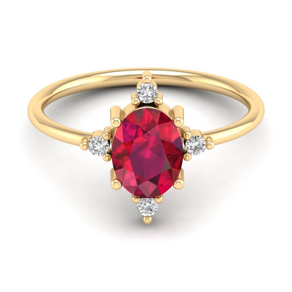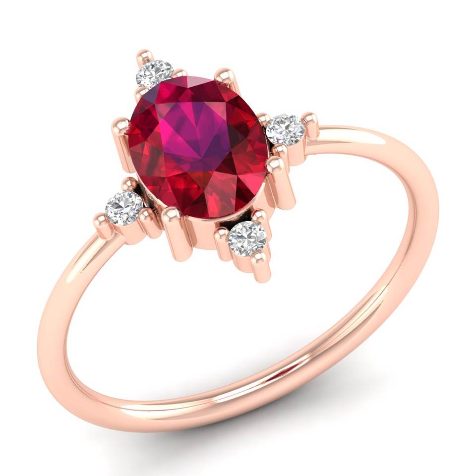 REYES Handmade 14K Solid Gold Moissanite Engagement Rings For Women Dainty Oval Cut 1.25 Carat Ruby Gemstone Solitaire Ring