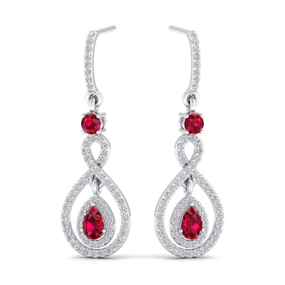 REYES High Quality 14K Gold Diamond Ruby Gemstone Women Party Jewelry Wedding Bridal Long Water Drop Dangle Earrings for Women