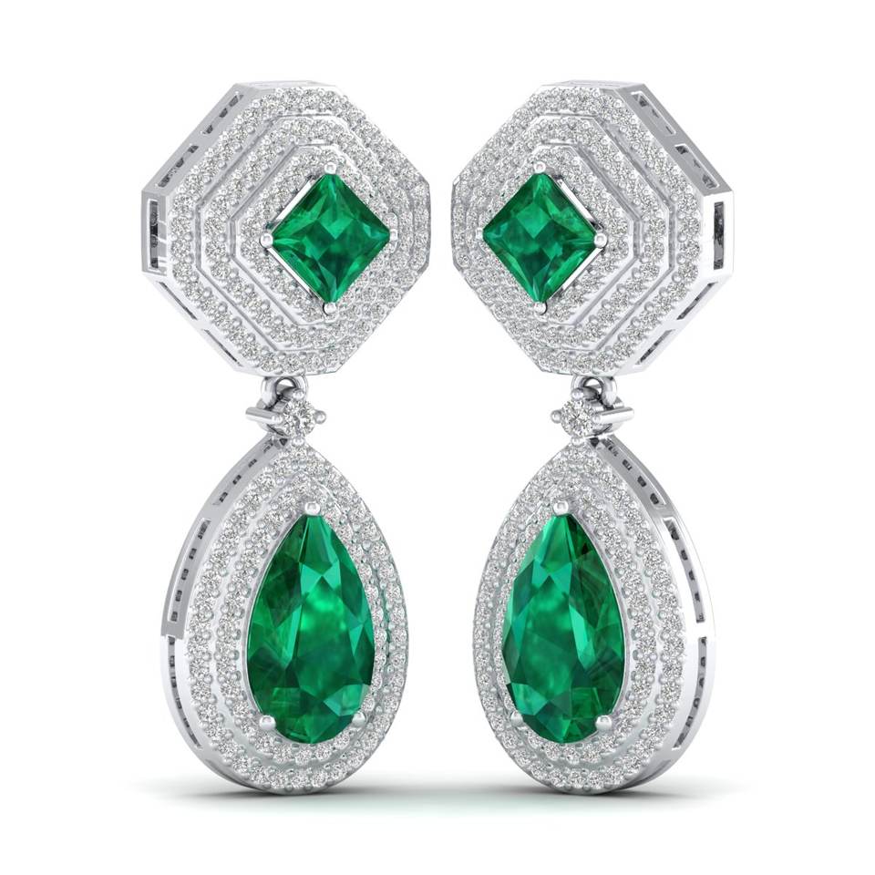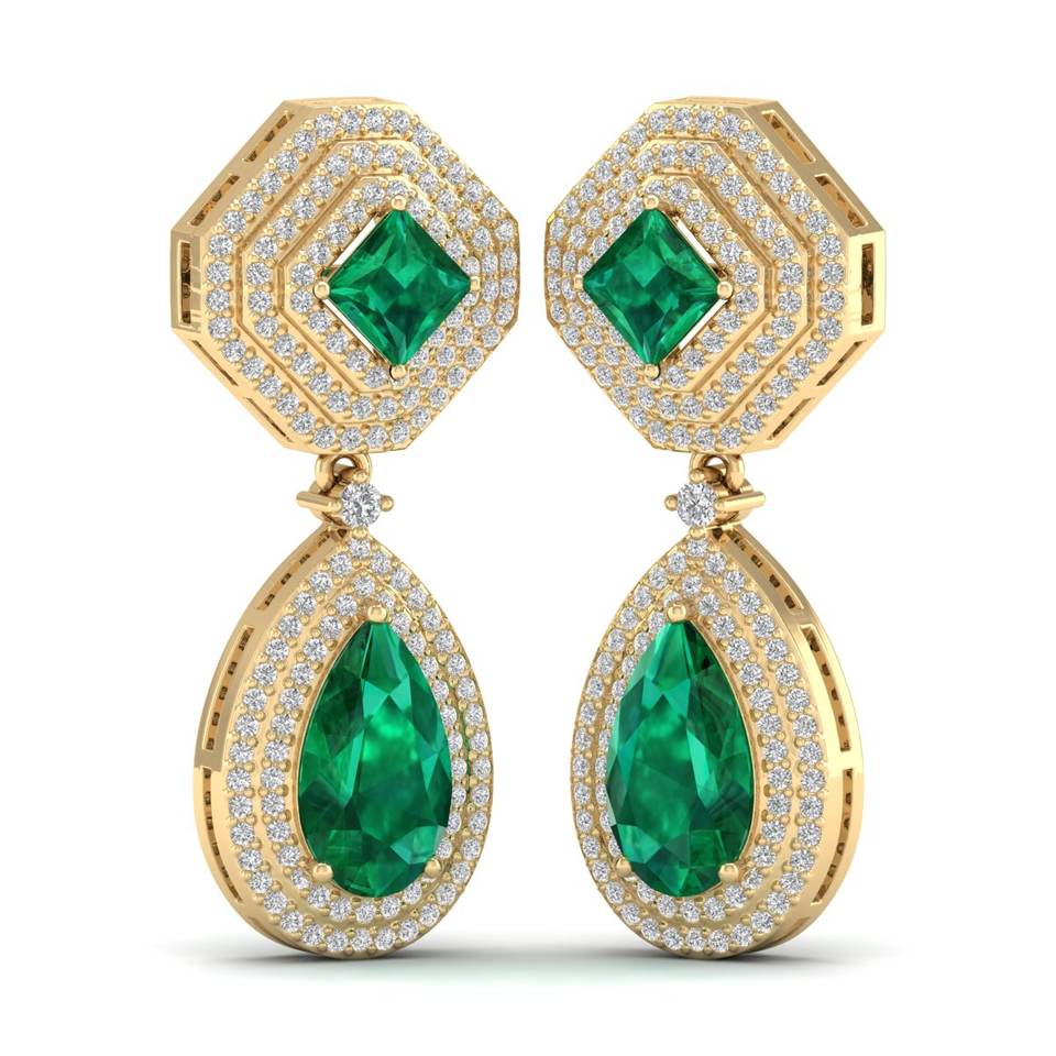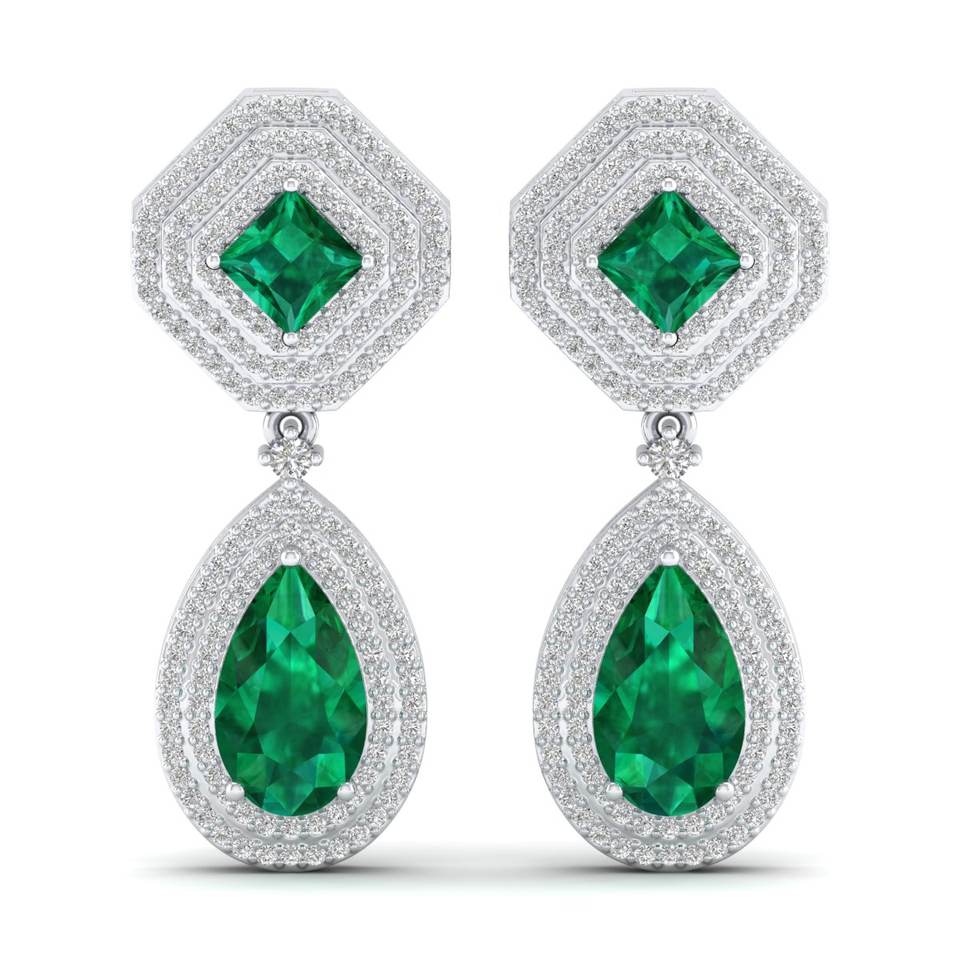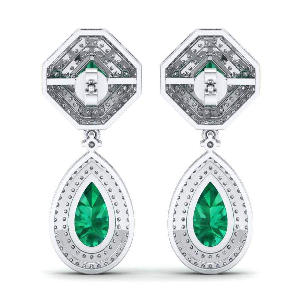 REYES High Quality 14K Solid Gold Pear Cut 7.7Ct Emerald Gemstone with Moissanites Dangle Drop Earrings For Women Fine Jewelry