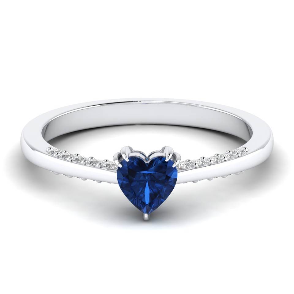 REYES Hot Selling Heart Shape 0.5Ct Blue Sapphire Gemstone Wedding Gift Fine Jewelry in 925 Sterling Silver Moissanite Rings