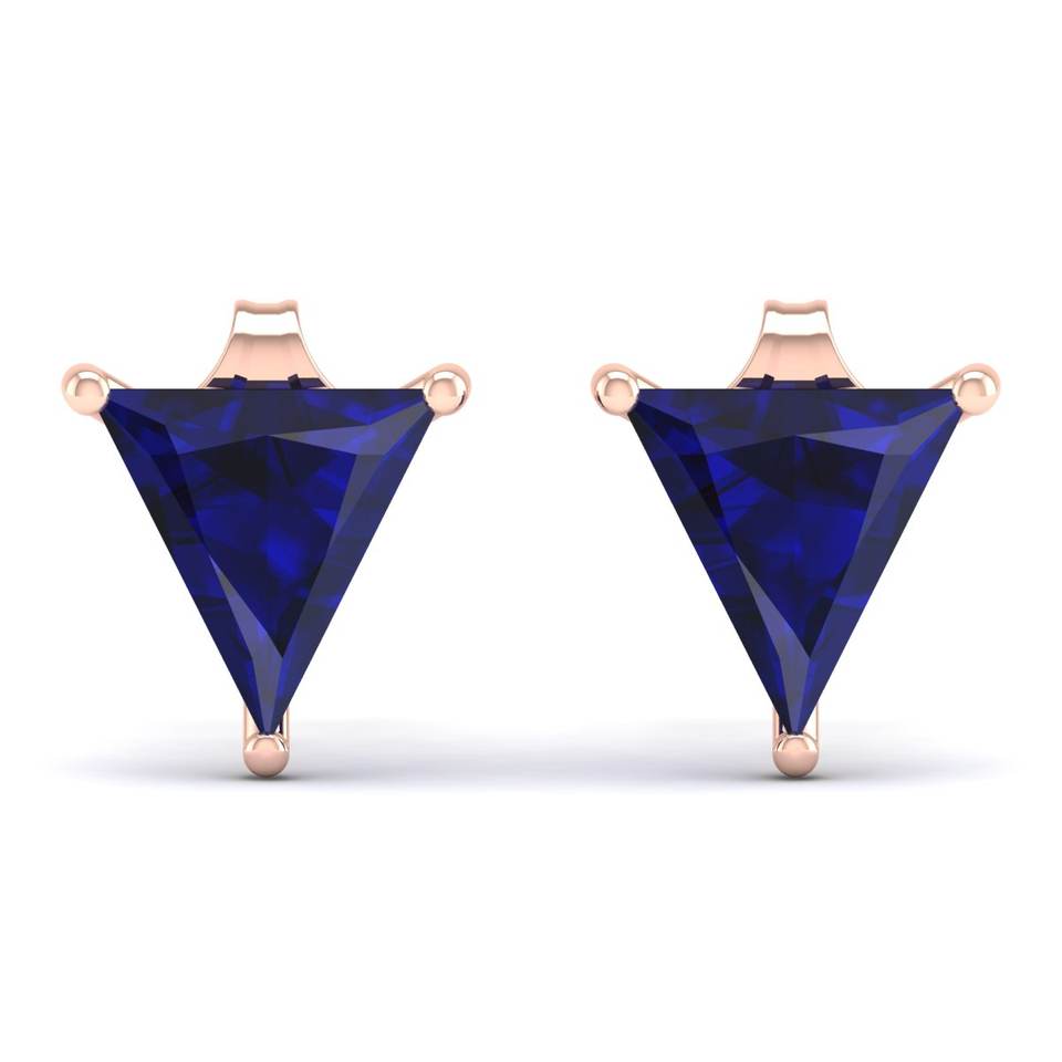REYES Luxury 10K 14K 18K Gold Moissanite Earrings Triangle Shape 2.22 Carat Blue Sapphire Gemstone Stud Earrings Fine Jewelry