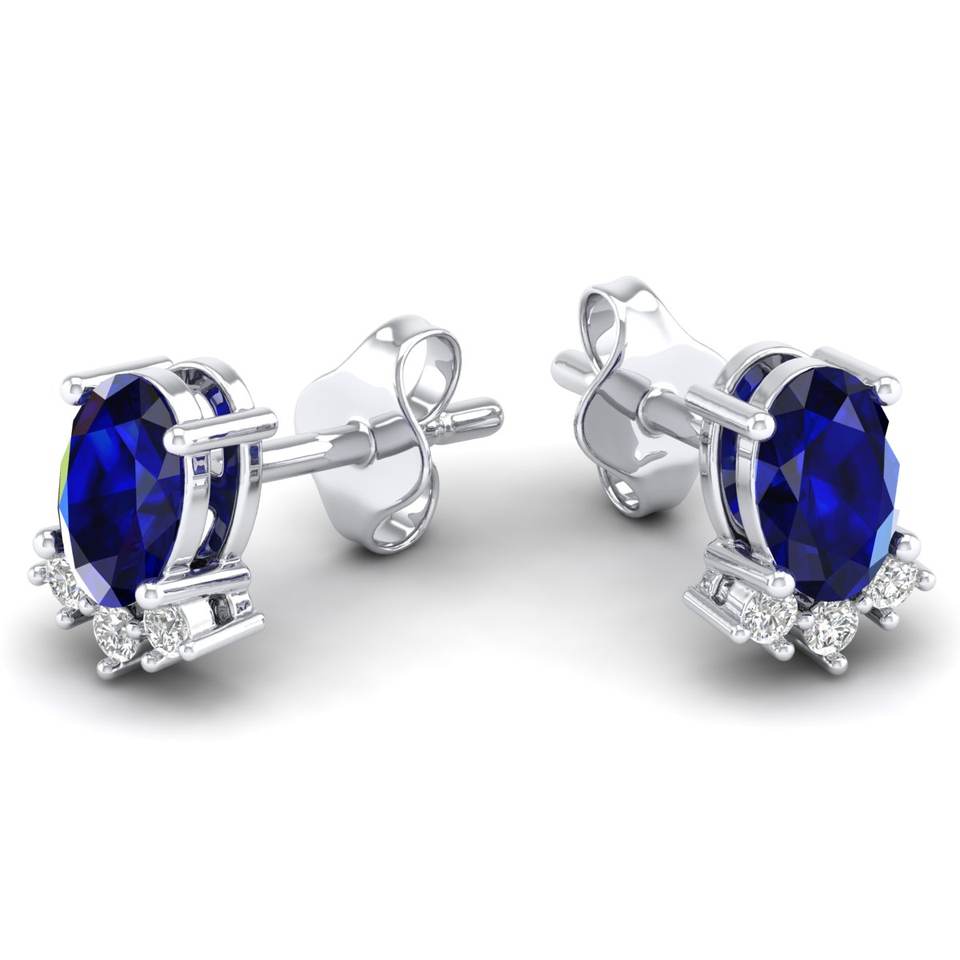 REYES Luxury 925 Sterling Silver Moissanite Stud Earrings Classic Oval Cut 1Ct Blue Sapphire Gemstone Handmade Jewelry