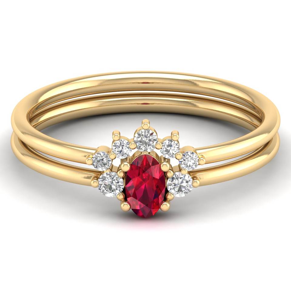 REYES Luxury 925 Sterling Silver Moissanite Engagement Rings 14K Yellow Gold Plated Oval Cut 0.21Ct Ruby Gemstone Jewelry