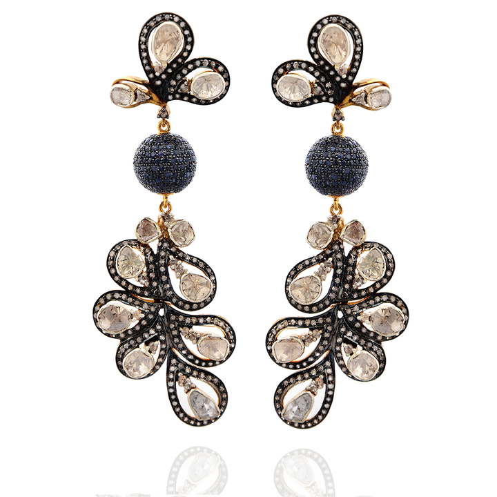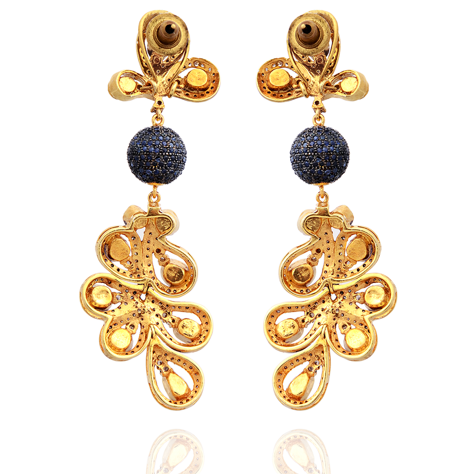 REYES Luxury Real Diamond Polki Victorian Earrings Wholesale 14K Gold 925 Sterling Silver Push Back Dangle Drop Jewelry