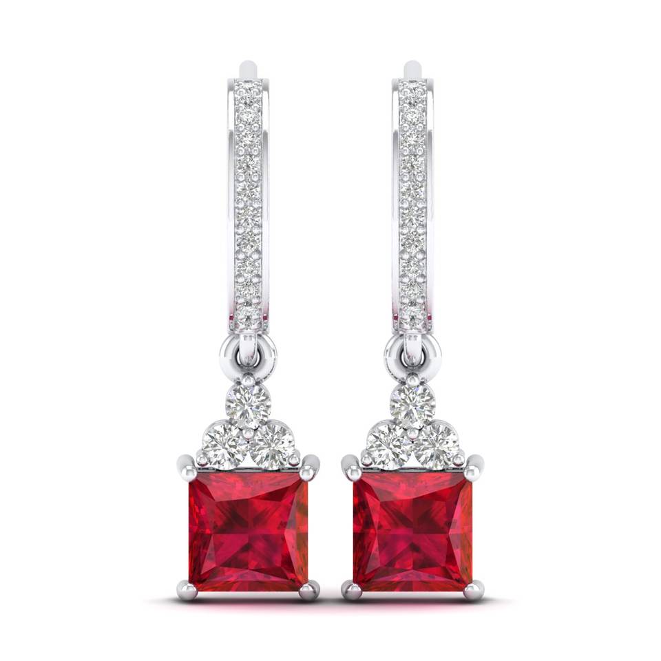 REYES Luxury New Fashion 925 Sterling Silver Drop Moissanite Earrings Statement Ruby Gemstone Wedding Fine Jewelry for Women