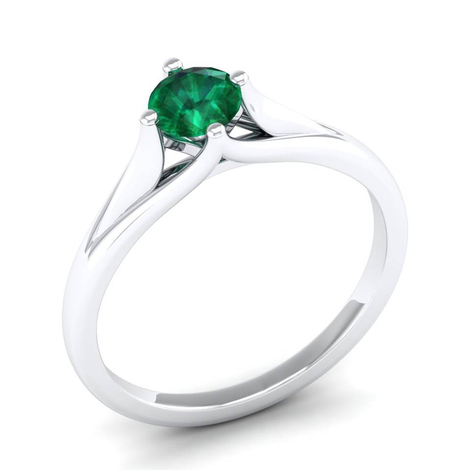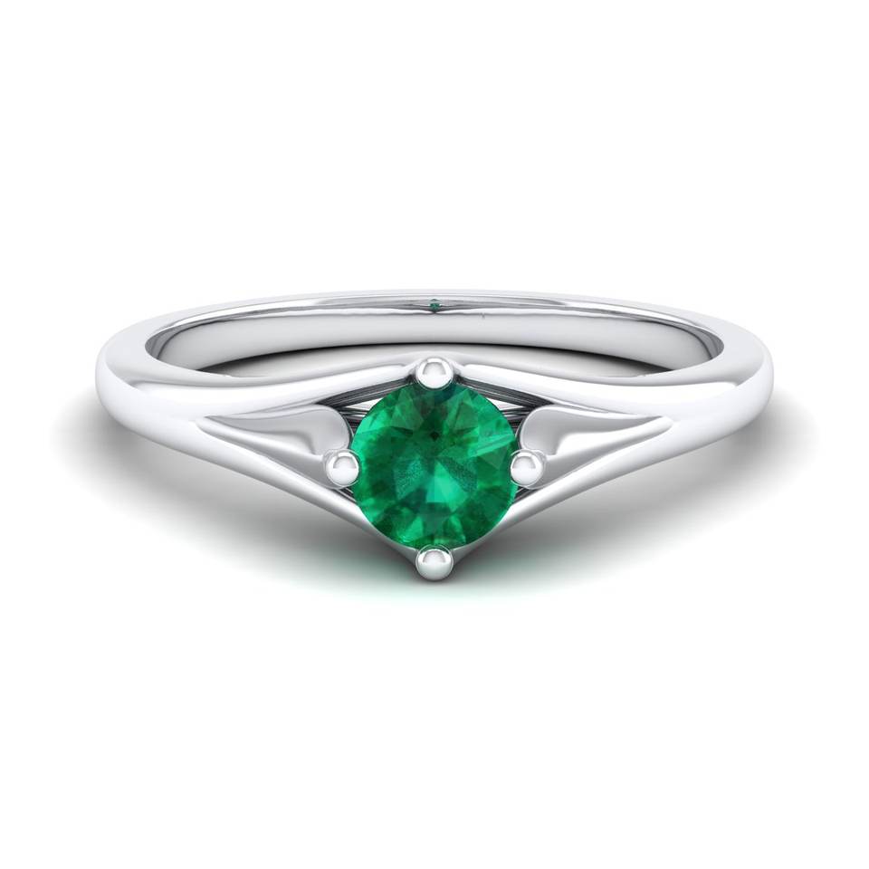 REYES Manufacturer Round Cut 0.5 Carat Emerald Gemstone Rings in Solid 925 Sterling Silver Moissanite Engagement Solitaire Rings