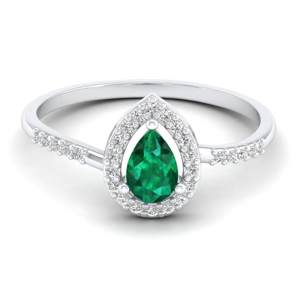 REYES New Design 925 Sterling Silver With Rhodium Plated Moissanite Solitaire Ring for Women Pear Cut Emerald Gemstone Jewelry