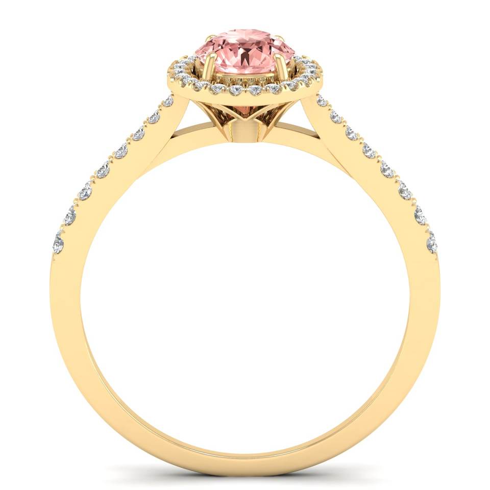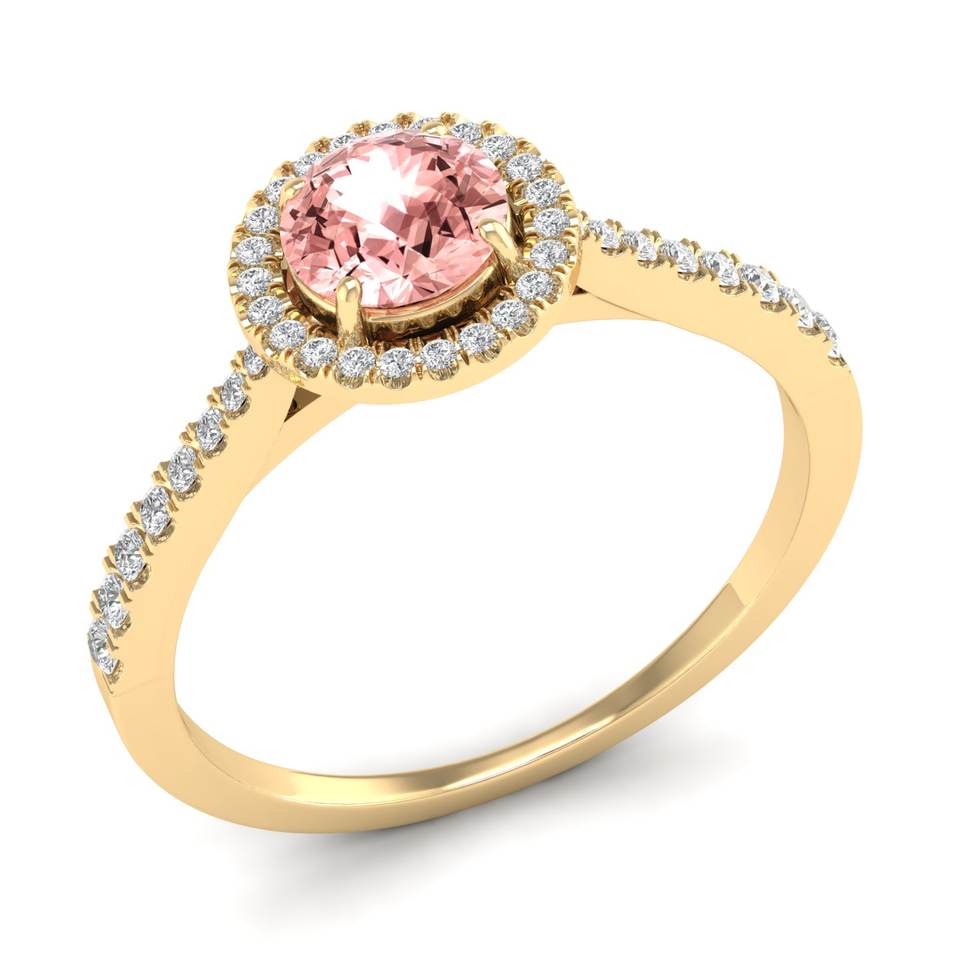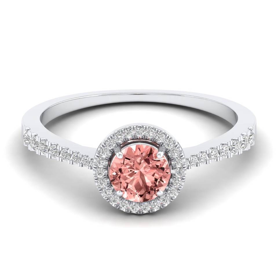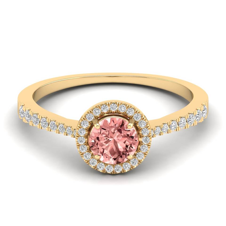 REYES Personalized 14K Solid Gold Diamond Wedding Halo Ring Round Brilliant Cut 0.84 Carat Morganite Gemstone Jewelry For Women