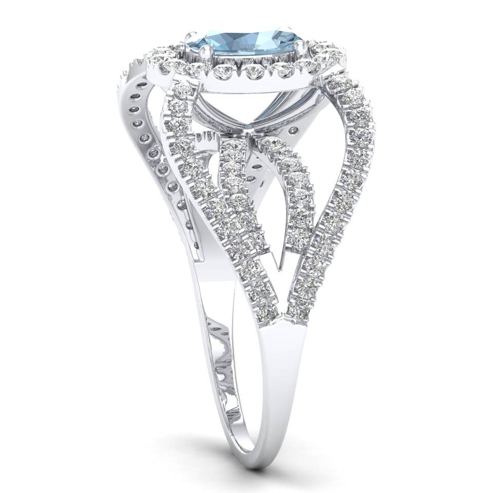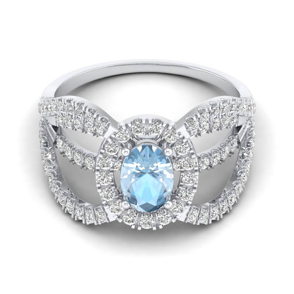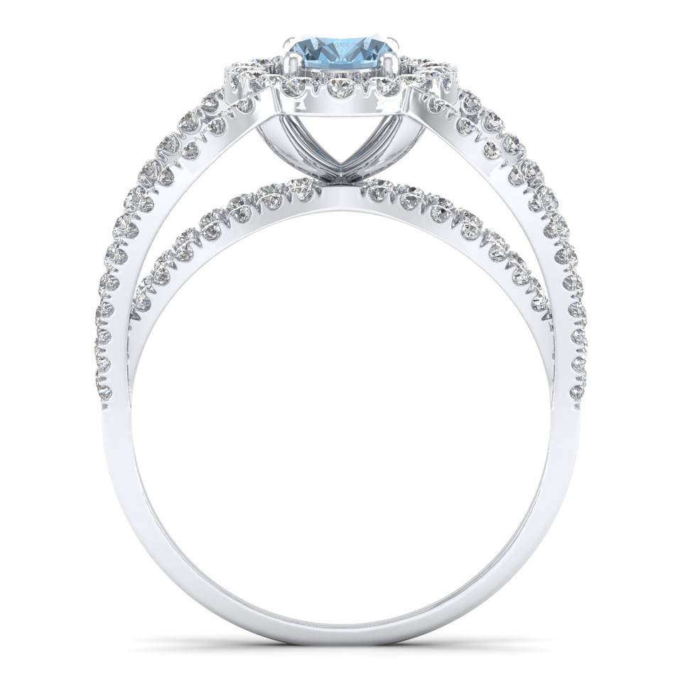 REYES Sparking Natural Aquamarine Gemstone Ring in 925 Sterling Silver GRA Certified VVS Moissanite Halo Rings For Women