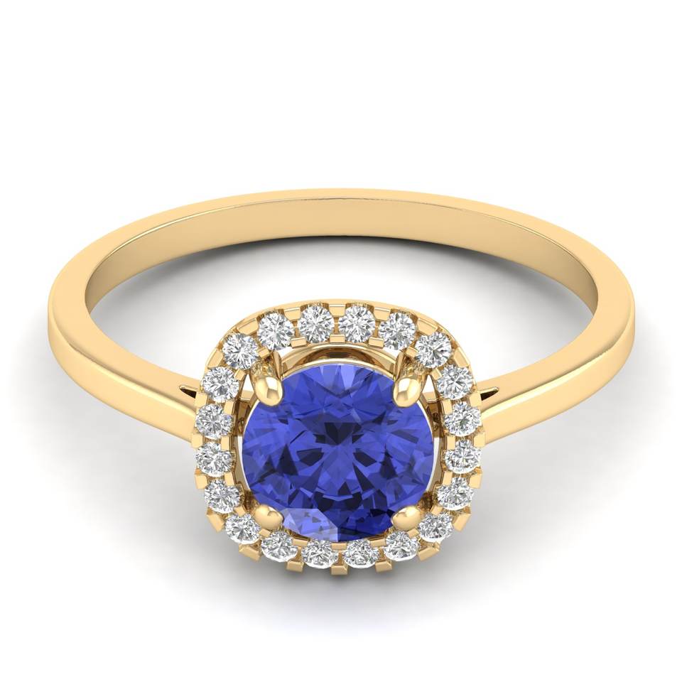 REYES Sparkling 925 Sterling Silver Round Cut 1 Carat Tanzanite Gemstone Halo Ring For Women GRA Certified Moissanite Jewelry