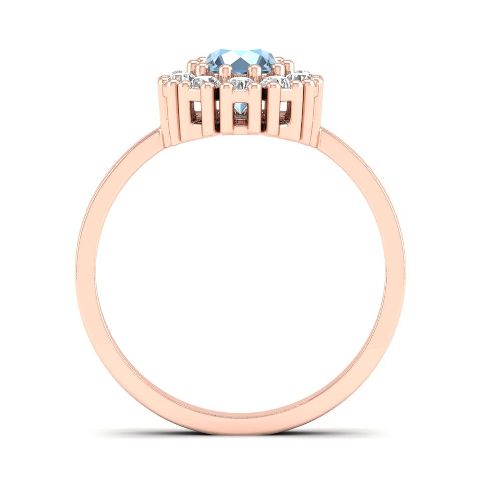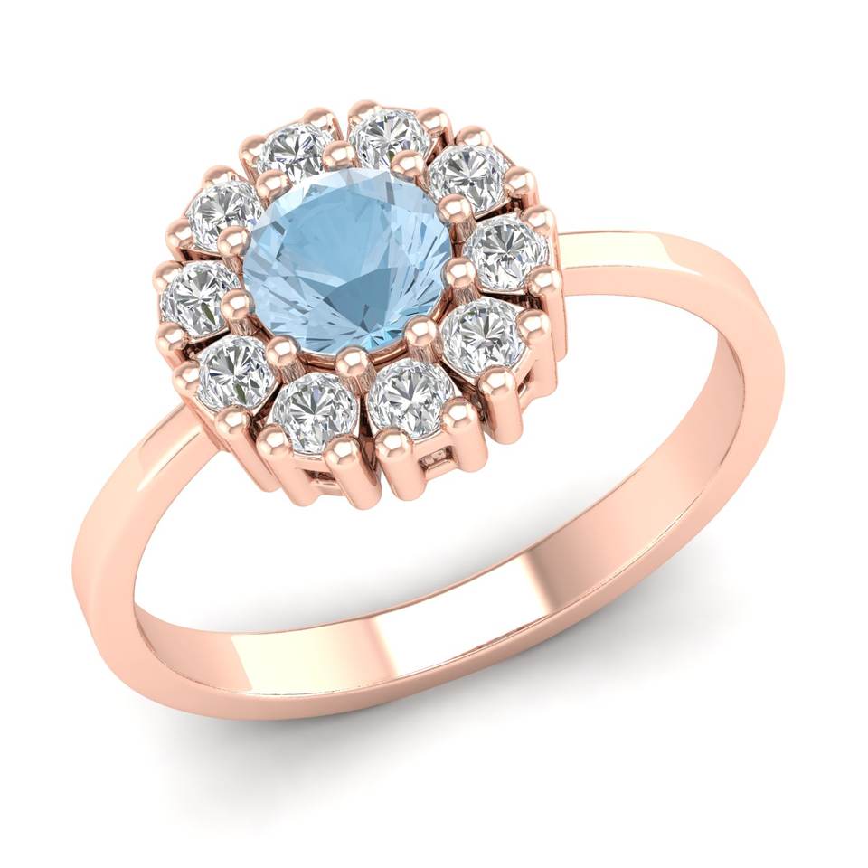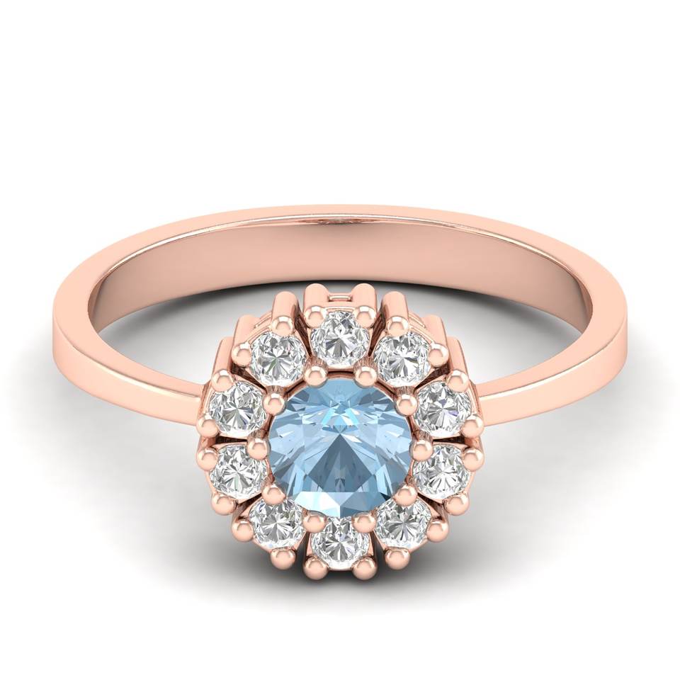 REYES Top Quality Round Cut 0.5 Carat Aquamarine Gemstone Wedding Fine Rings Solid 14K Rose Gold Engagement Rings For Women