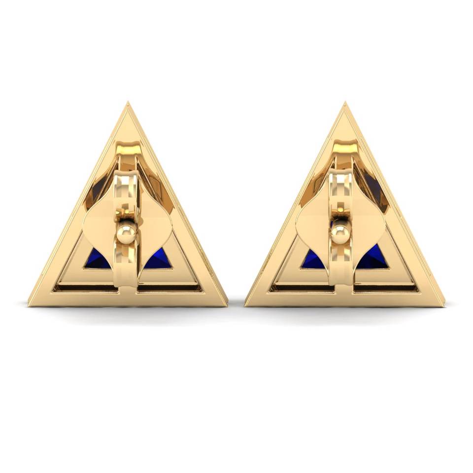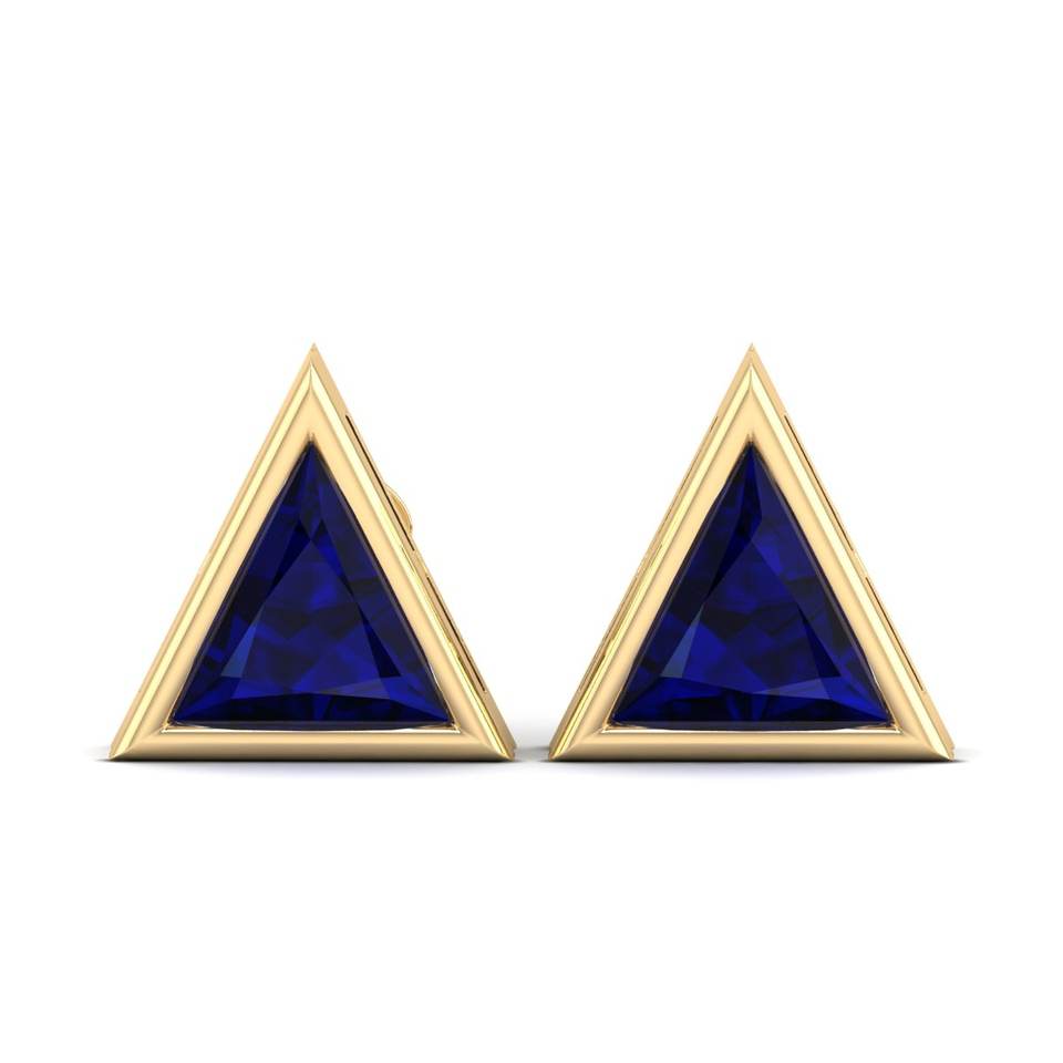 REYES Trendy 925 Sterling Silver Moissanite Stud Earrings for Women 14K Gold Triangle Shape 2.2Ct Blue Sapphire Gemstone Jewelry