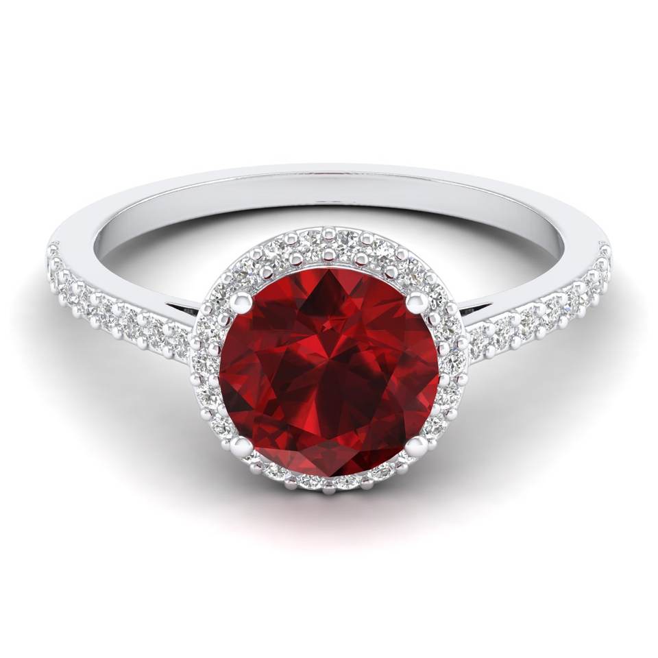 REYES Wholesale 925 Sterling Silver Moissanite Halo Rings High Quality Round Cut 1.75 Carat Garnet Gemstone Fine Jewelry