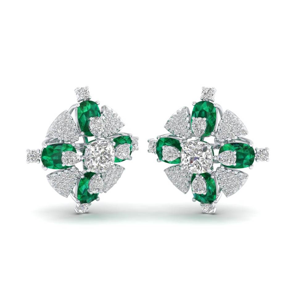 REYES Wholesale Custom 925 Sterling Silver Moissanite Stud Earrings Women 24.6 Carat Emerald Gemstone Anniversary Gifts Jewelry