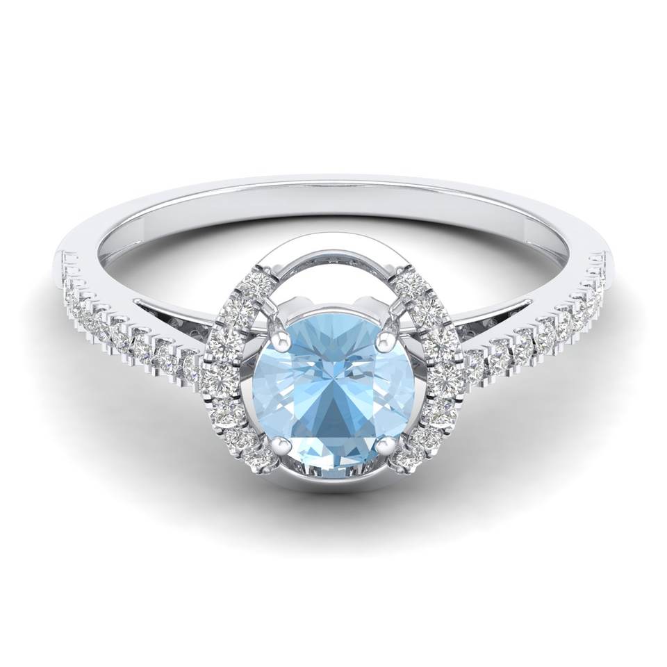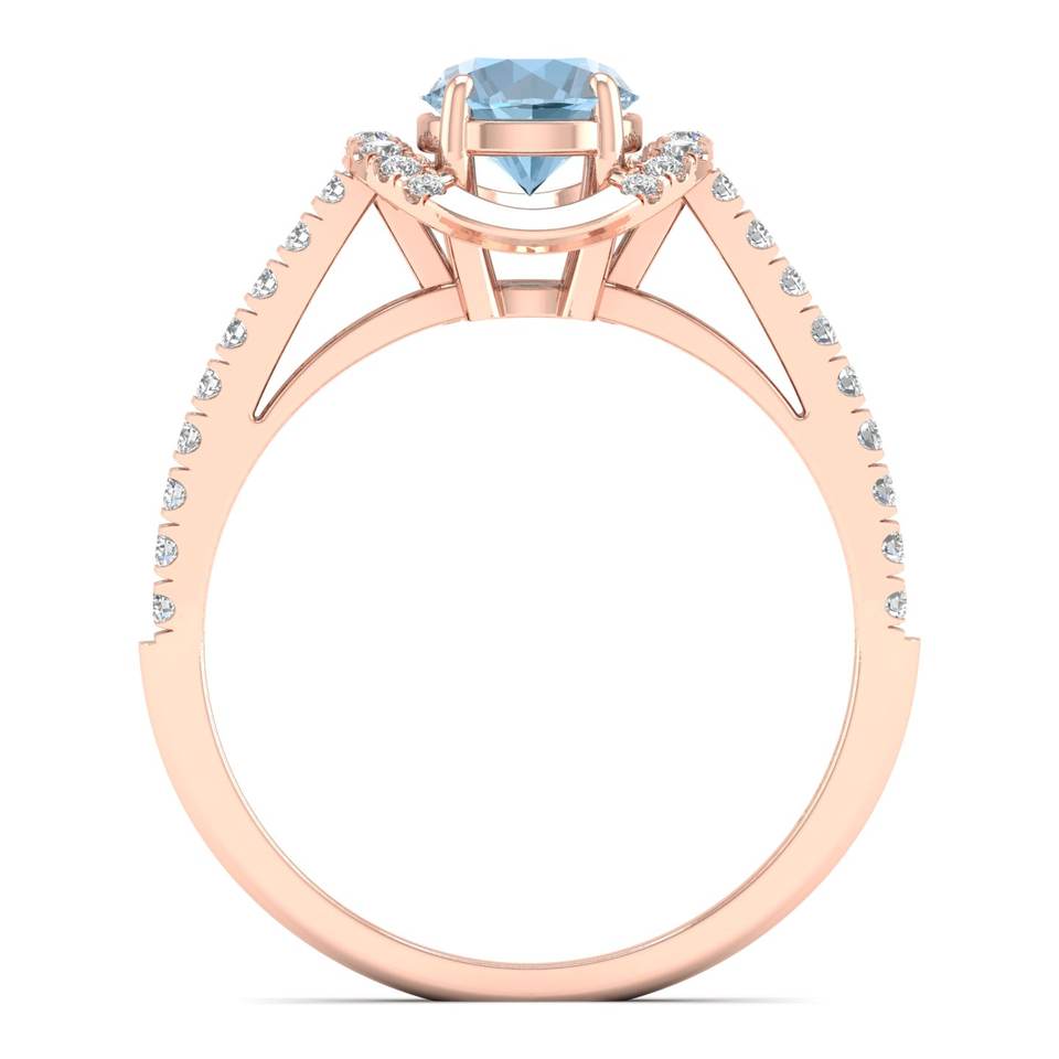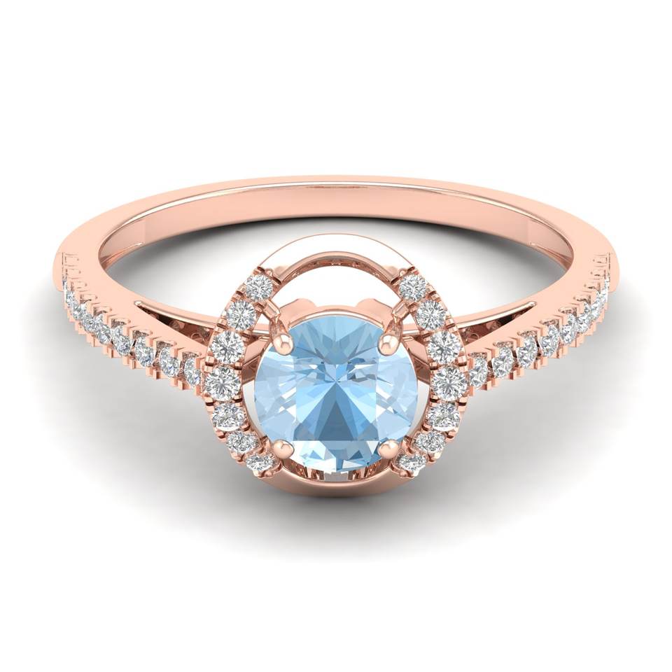 REYES Wholesale Price 14K Rose Gold Round Cut 0.84 Carat Aquamarine Gemstone Halo Ring IGI Certified Diamond Jewelry For Women