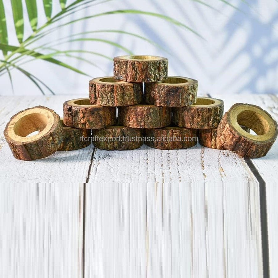 RFCrafts India Handmade Bohemian Wooden Napkin Rings Set Colorful Sailor Rayon Napkin Holders Stands Dinner Decor Cake Tools