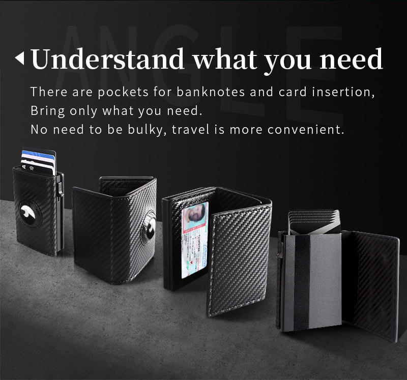 RFID Protected Lightweight Leather Wallet Factory Customized Pop-Up Card Holder with Air Tag