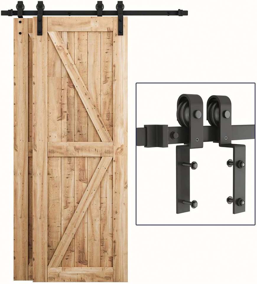 RHETECH Modern Bespoke Custom Steel Black Color Bypass Sliding Barn Door Hardware Kit for Bedroom Double Door