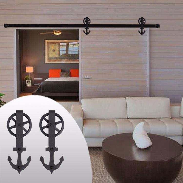 RHETECH Wholesale Modern Black Cabinet Track Brass Steel Sliding Barn Door Hardware Kits Soft Close Fitting for Outdoor Sliding
