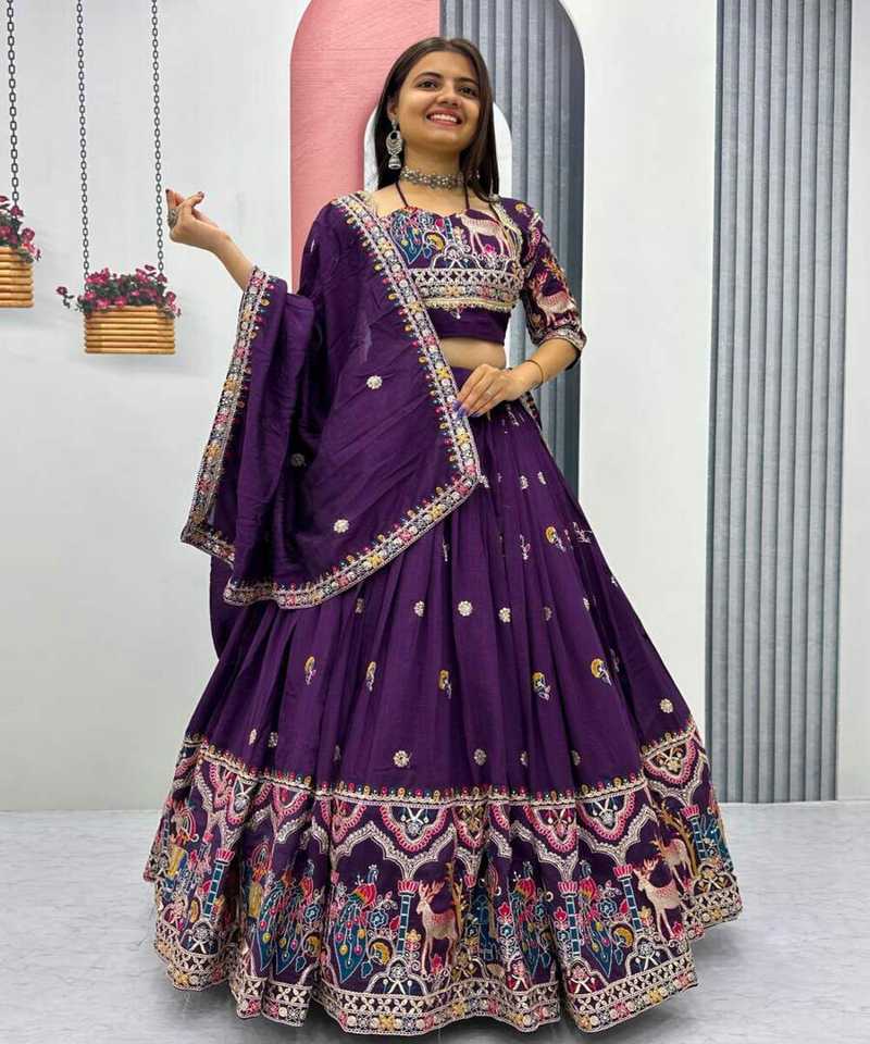 RICH LOOK PADDING CHINON EMBROIDERY WORK LEHENGA CHOLI DUPATTA PARTY WEAR WHOLESALE PRICE ETHNIC GARMENT HIGH QUALITY INDIAN