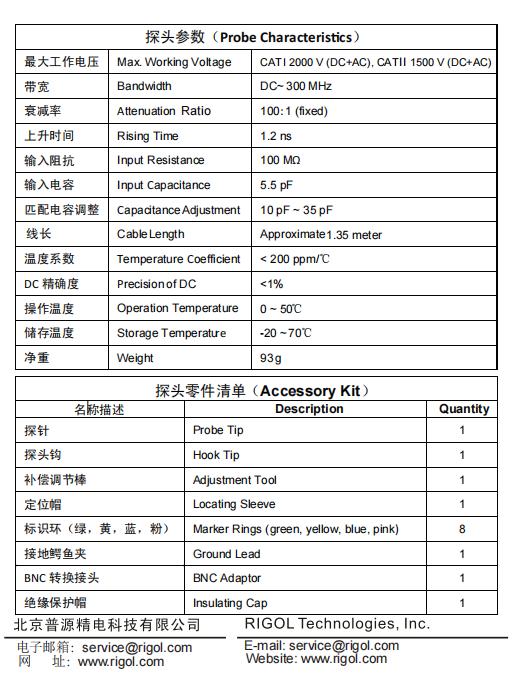 RIGOL RP1300H 300MHz 2000V Oscilloscope Passive Probe