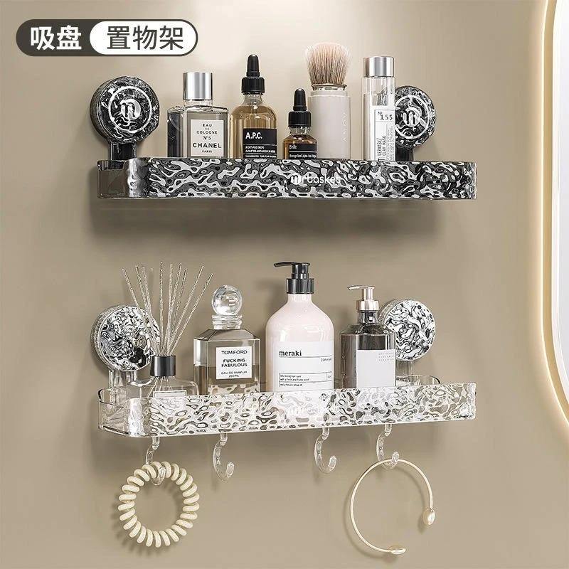 RJDJ Light Luxury Glacier Pattern Suction Cup Shower Caddy Bathroom Shelf Organizer for Soap Dispenser Storage Gray