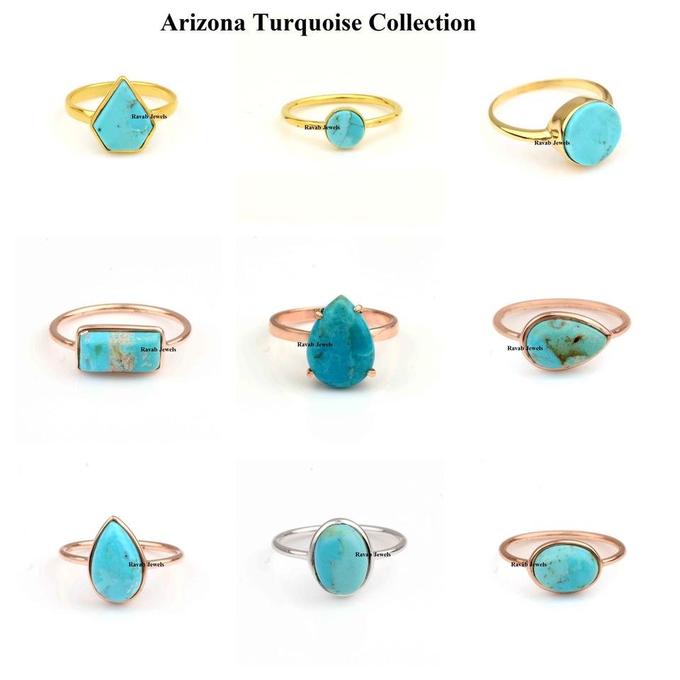 RJR0238 Natural Sleeping Beauty Arizona Turquoise 10x14mm Pear Eternity Vermeil 925 Sterling Silver Gemstone Ring At Good Price