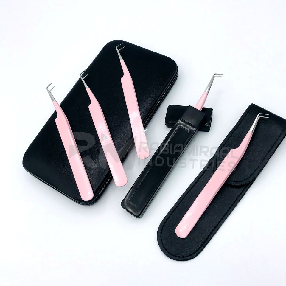 RMI Customized Magnetic Case For Tweezers Pink Color Silver Tip Eyelash Tweezers Best Hot Selling Pink Lash 90 Degree Tweezers