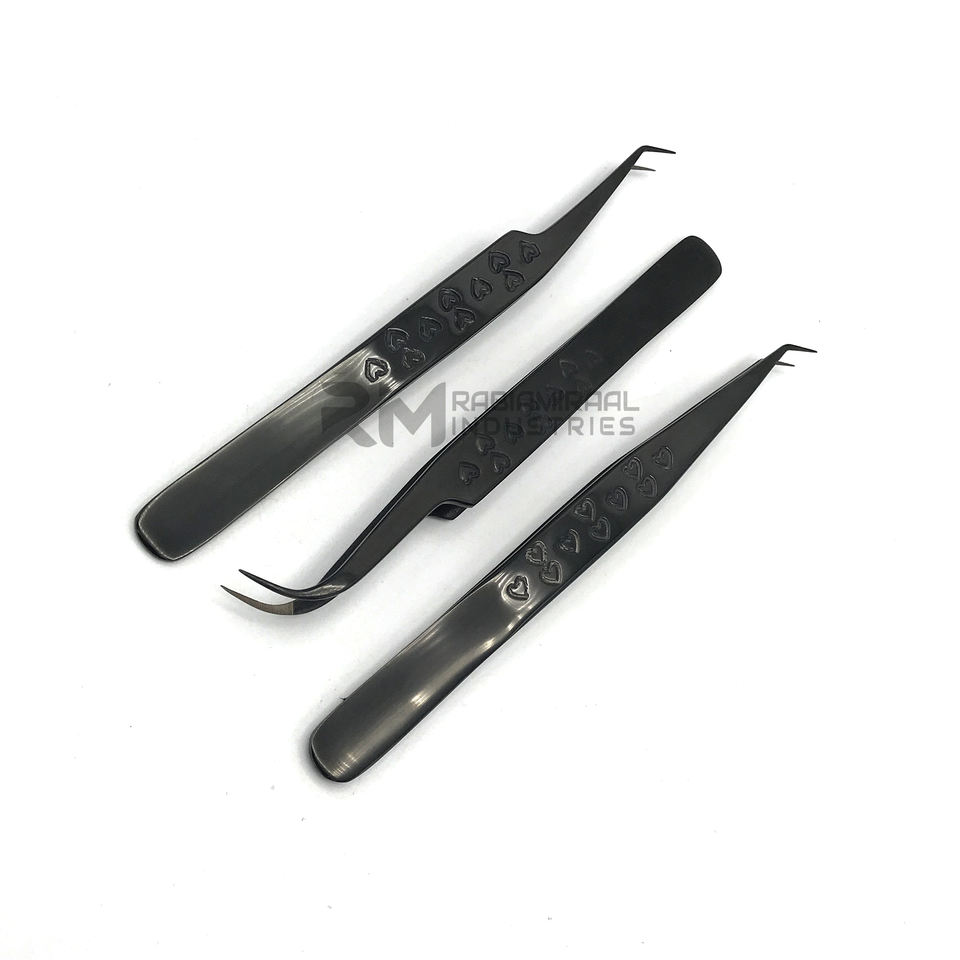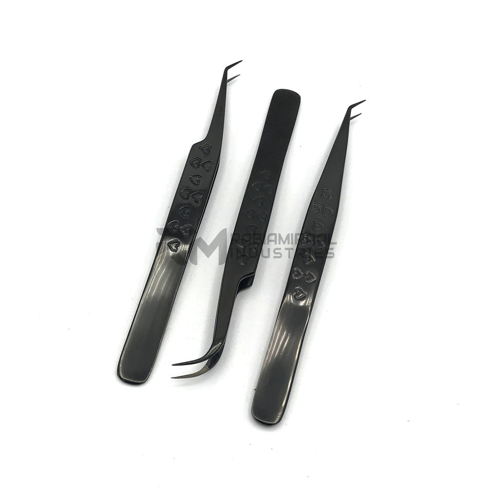 RMI Heart Shape Grip Black Plasma Tweezers Custom Logo Volume Private Label Stainless Steel Tweezer For Eyelash Extension