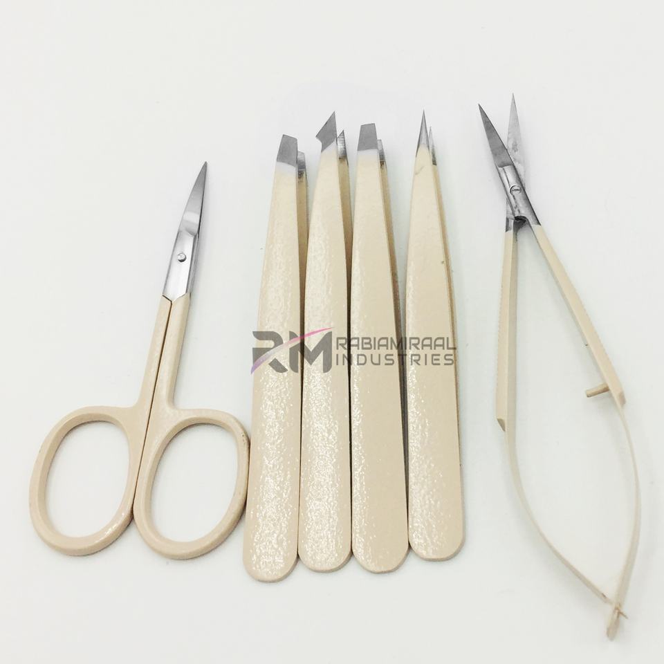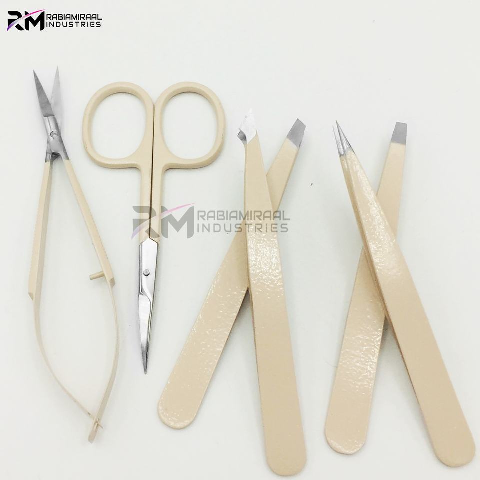 RMI Most Popular Product Eyebrow Tweezer Nude Powder Coated Color / Silver Tip Stainless Steel Spring/ Cuticle Scissor Set
