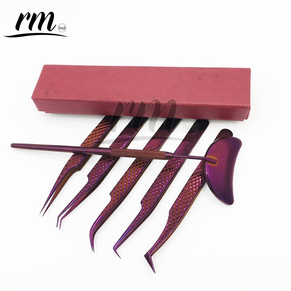 RMI Purple Plasma 45 90 Degree Fiber Tip Tweezers Customize Volume Isolation Boot Thin Lash Extension Tweezers With Lash Mirror