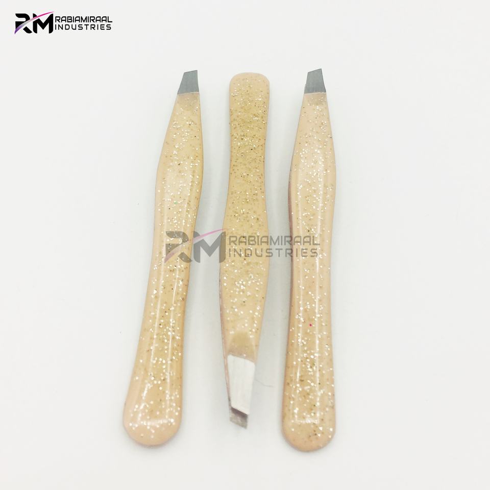 RMI Super Product Angle Eyebrow Tweezer Nude Glitter Color And Silver Tip Tweezers Set