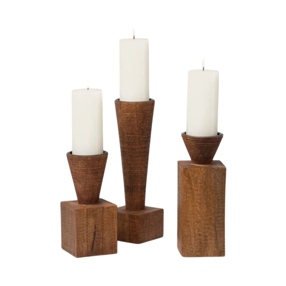 ROSHAN HANDICRAFTS Latest Designer Creative Handmade Tapered Wooden Candle Stand 2-color Laminated Finish for Home Hotel Decor