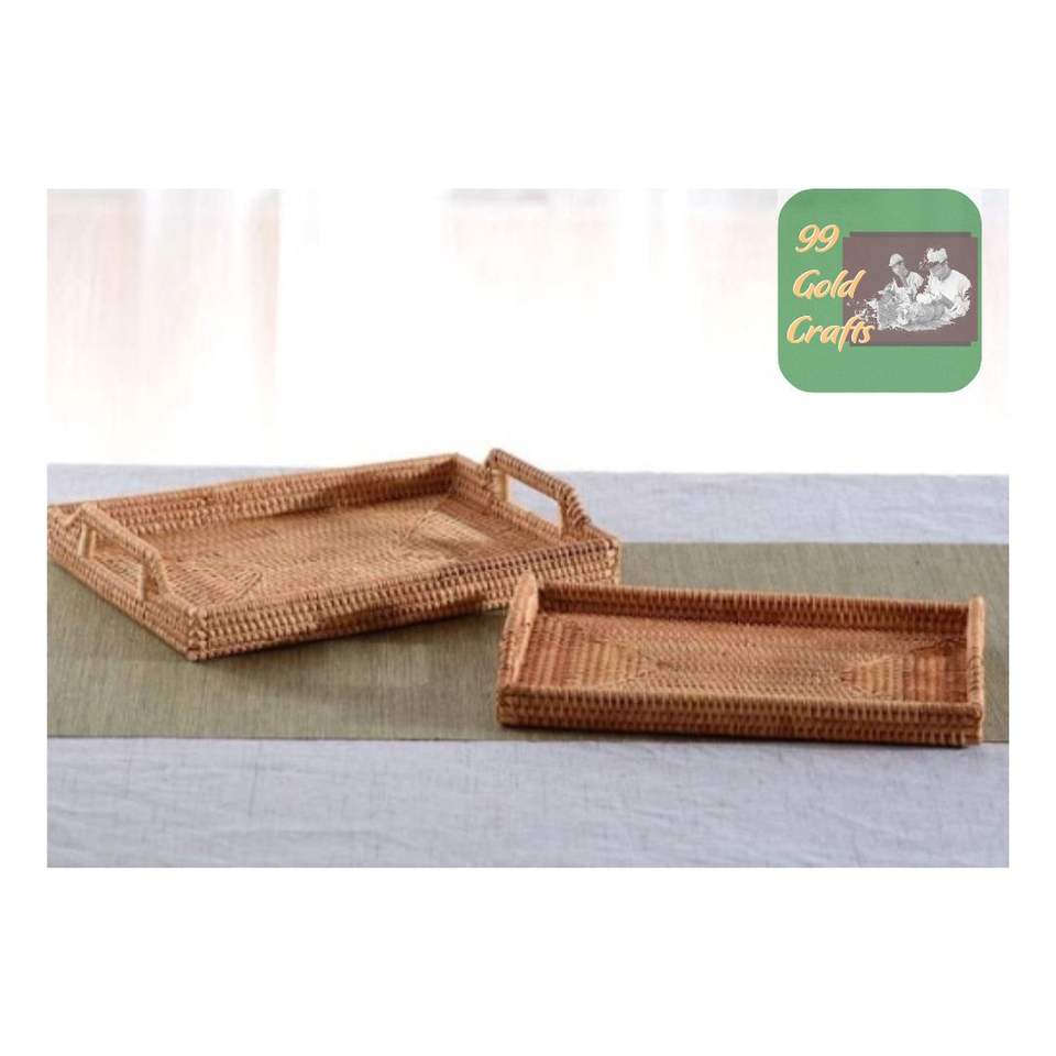 ROUND BAMBOO RATTAN TRAY WITH MOTHER OF PEARL INLAY PREMIUM HANDICRAFT DESIGN MADE IN VIETNAM