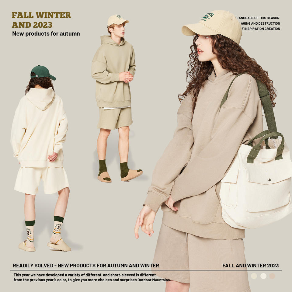 RS400 Men's Autumn Oversized Hooded Jacket Pants Shorts Set Fleece Suit 100% Cotton Heavyweight Anti-Pilling Full Length Readily