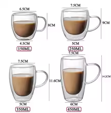 RSCHEF Double Wall High Borosilicate Glass Mug Heat Resistant Insulated Eco-Friendly Tea Milk Lemon Juice Coffee Water Drinkware