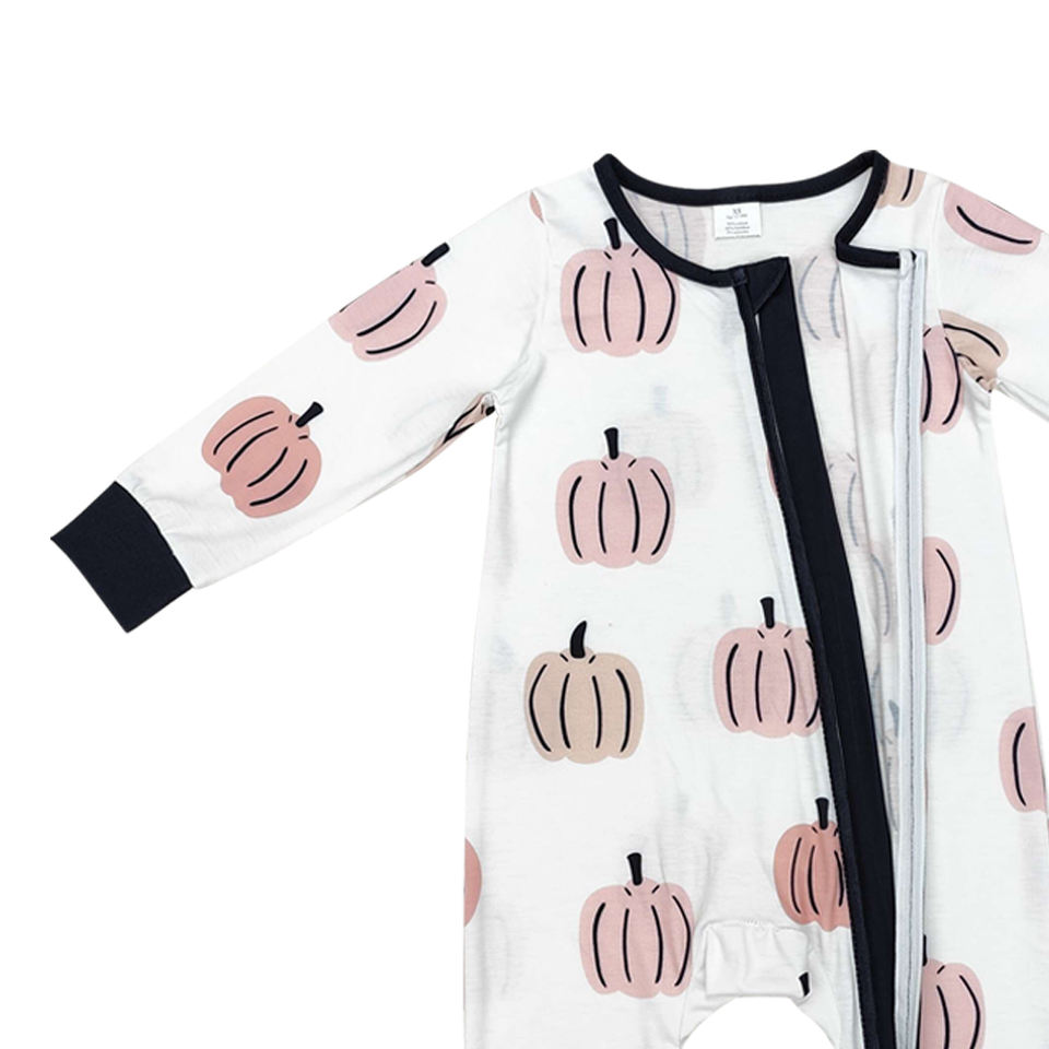 RTS Baby Boys Infant Pumpkin Print Long Sleeve Cotton Spandex Wholesale Romper for Kids Clothing