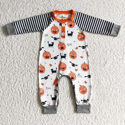 RTS Bat pumpkin spooky Embroidery Jumpsuit for Kids Long Sleeve Infant Boy Wholesale Romper