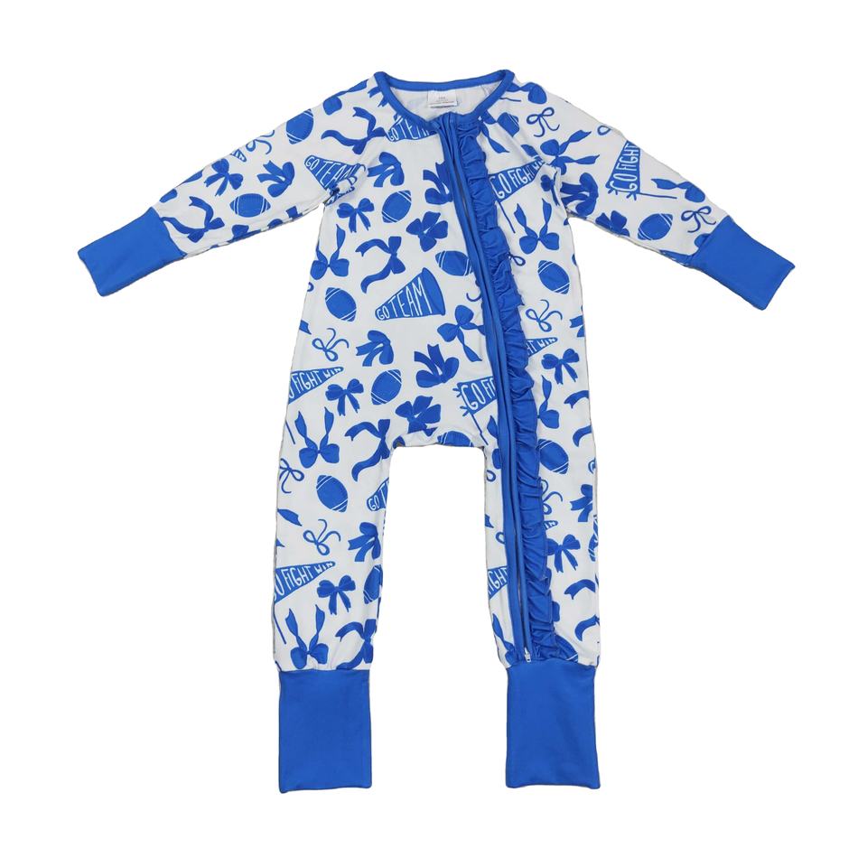 RTS Boutique Football Go Team Toddler Romper Baby Sleepwear Zipper Footie Sleepers Newborn Wholesale Sleepwear for Newborn