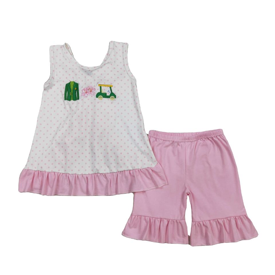 RTS Boutique Golf Cart Embroidery Little Girls Shorts 2-Piece Outfits Cute Spring Autumn Breathable Cotton Spandex Clothes