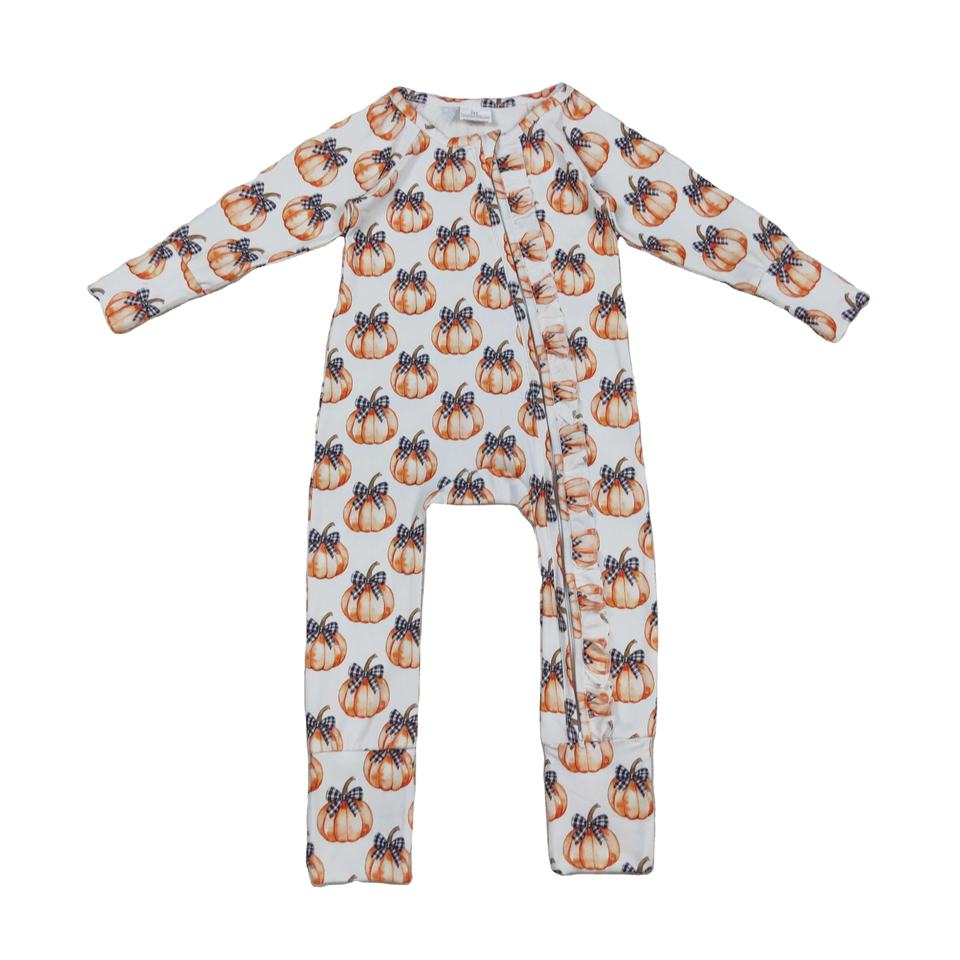 RTS Fall Toddler Romper Pumpkin Print Baby Sleepwear Zipper Footie Sleepers Newborn Wholesale Sleepwear for Newborn