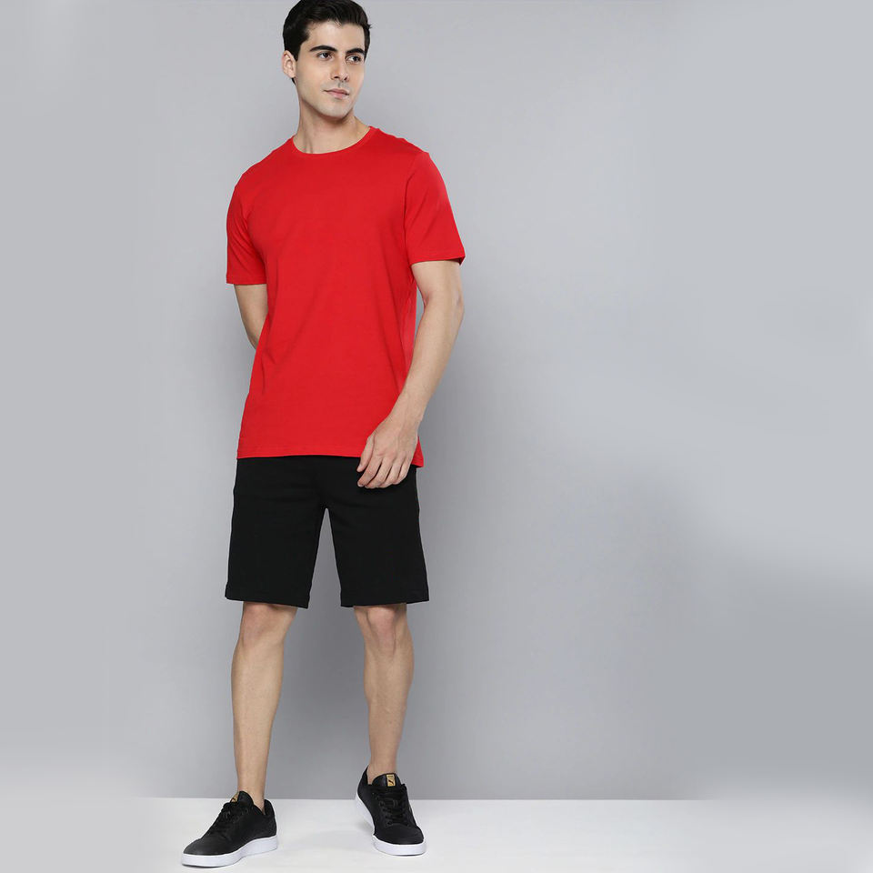 RTS High Quality 100% Cotton Tshirts Custom Mock Neck Red Men's Loose Fit Casual Long Solid Plain T-shirt Clothing Wholesale