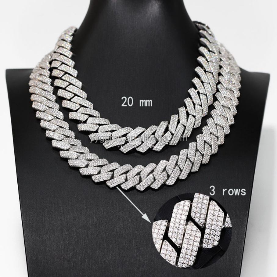RTS Hip Hop Cuban Link Chains 20mm 3rows Solid 925 Silver Shining VVS Moissanite Chain Men Diamond Necklace