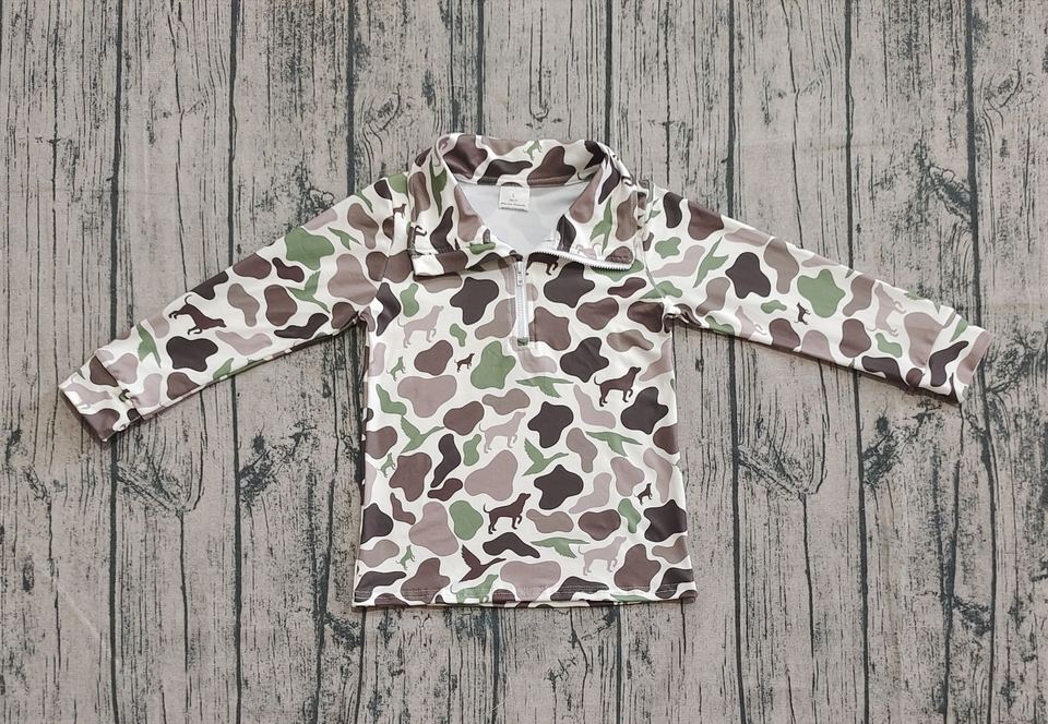 RTS Little Boy Boutique Orange green camo print Top wholesale toddler boy long sleeve child cowboy western clothing set