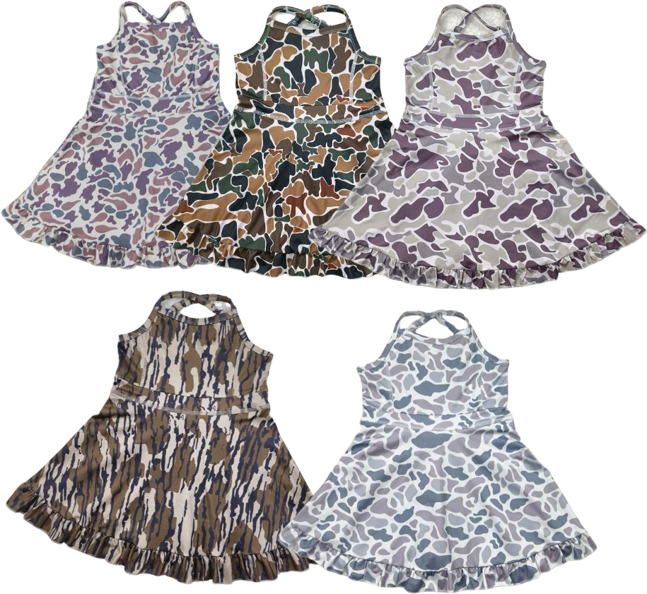 RTS Little Girl Boutique Camo Print Yoga Dress High Quality Kids Wholesale Summer Athletic Sleeveless Set Flower No MOQ