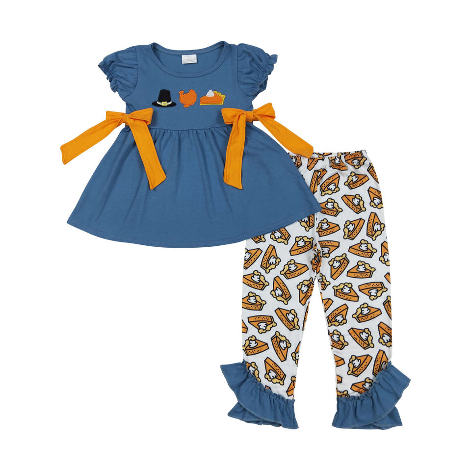 RTS NO MOQ Kids Girl Thanksgiving Turkey Short Sleeve Fall Winter Outfit Wholesale Baby Clothes